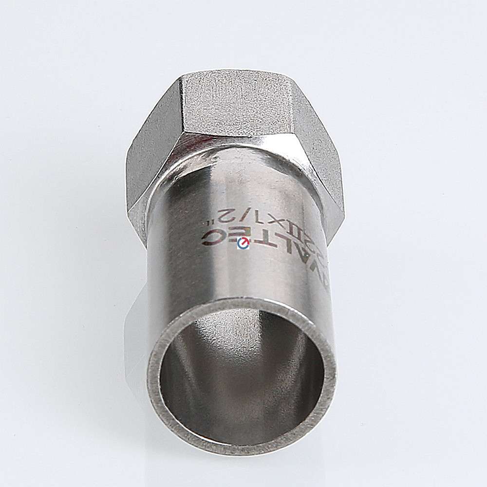 (VTi.907.I) Вставка с внутренней резьбой VTi.907.l предназначена для использования совместно с пресс-фитингом системы VALTEC INOX-PRESS при монтаже трубопровода из нержавеющей стали – для перехода с пресс-соединения на резьбовое. Изделие изготовлено из стали AISI 304.