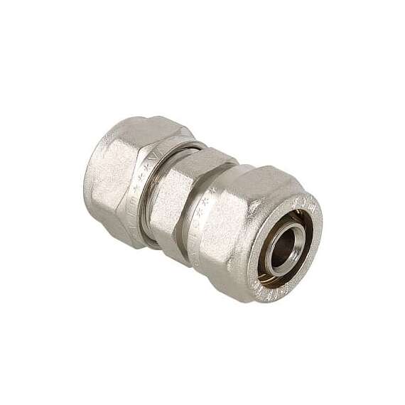 Прямой латунный никелированный фитинг для соединения металлополимерных труб. Имеются равнопроходные модели и модели с переходом на другой диаметр.