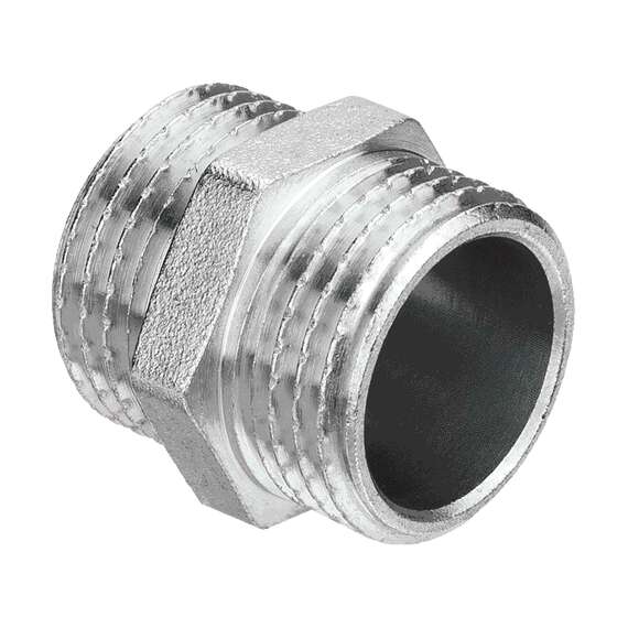 Резьбовой соединительный элемент для металлических частей трубопровода - ниппель латунный никелированный. Применяется в системах холодного и горячего водоснабжения, отопления и прочих трубопроводах с неагрессивной рабочей средой.
