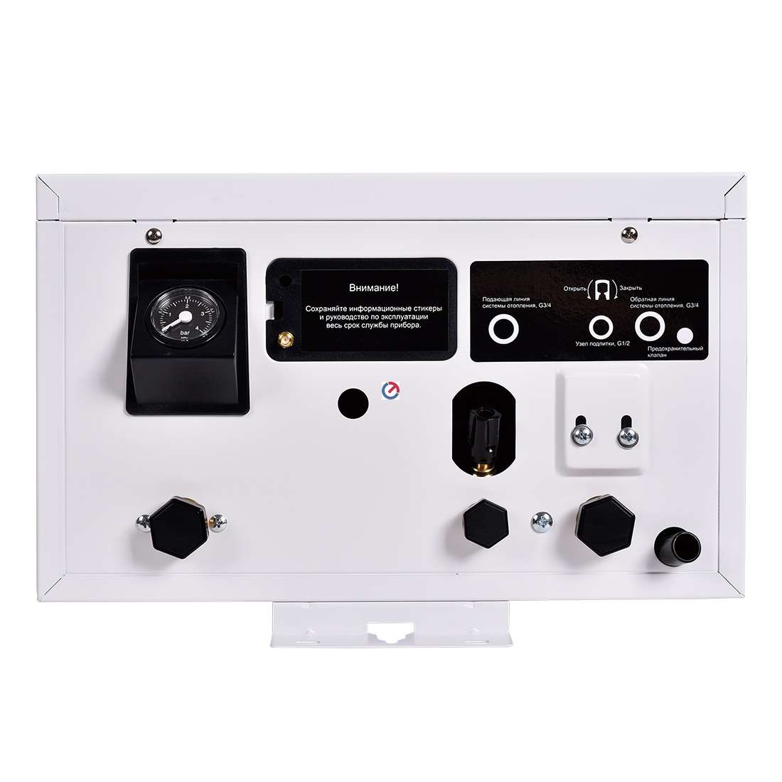 В конструкции электрокотла уже предусмотрены расширительный бак объёмом 6 литров для компенсации перепадов давления и циркуляционный насос для стабильной циркуляции теплоносителя.