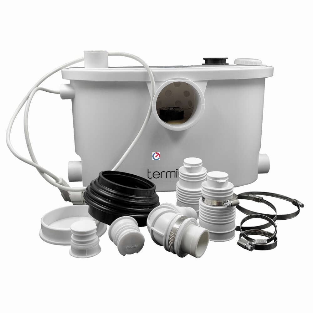 Корпус установки изготовлен из пластика. Система подключений включает три входных патрубка (сбоку и сверху) и патрубок для соединения с унитазом (с фронтальной стороны, диаметр присоединения от 75 до 110 мм). Выходной патрубок, предназначенный для отвода стоков в канализацию, имеет диаметр 40 мм.