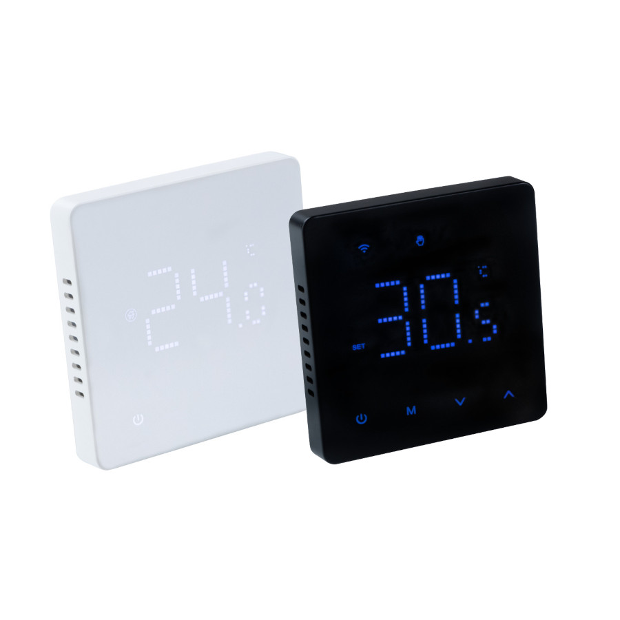 Комнатный WiFi-хронотермостат VT.AC608 — это современное устройство для автоматического регулирования температуры внутри помещения, для автоматического поддержания пользовательских настроек температуры воздуха в помещении или температуры поверхности тёплого пола. Термостат осуществляет регулирование путём коммутации нагрузки до 16 А (3600 Вт) при напряжении сети 100-240 В. Конструкция устройства включает встроенный и внешний датчики температуры типа NTC, обеспечивающие гибкую конфигурацию рабочих параметров и позволяющие настраивать подробное недельное расписание.
