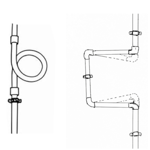 Самый простой и надёжный способ — сформировать на длинном прямом участке П-образный изгиб или смонтировать компенсатор - петлю, при нагреве петля будет сжиматься и разжиматься, снимая напряжение. Монтаж компенсационной петли необходим на прямых участках длиной от 3-4 метров (для PPR). Обязательно — на выходах из стяжки в стены, перед входами в котел и коллекторы, в контурах теплого пола большой длины. При пайке длинного участка заранее сформируйте из трубы П-образный компенсатор или установите готовый фитинг - петлю, закрепив её на специальных направляющих кронштейнах, которые позволяют ей двигаться.