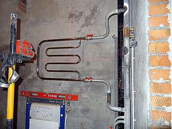 В ванной комнате зачастую монтируются полотенцесушители . Эти устройства отапливают пространство , одновременно избавляя мокрые полотенца и другие вещи от впитанной влаги . Простейшая конструкция выглядит как змеевик , являющийся продолжением трубопровода отопительной системы . Разновидности...