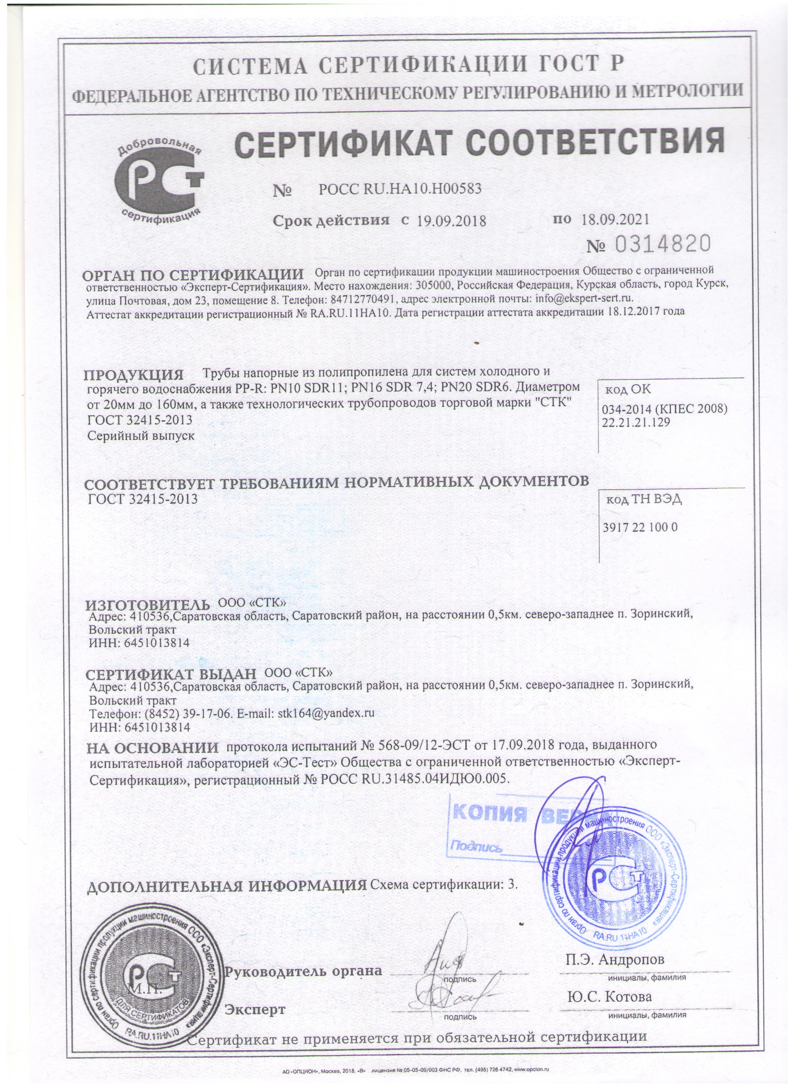 Полипропиленовая неармированная труба "СТК" PN20, SDR 6, ГОСТ 32415-2013. Используется в системах горячего водоснабжения, питьевого и хозяйственно-питьевого холодного водоснабжения, а также в качестве технологических трубопроводов для неагрессивных жидкостей и газов.